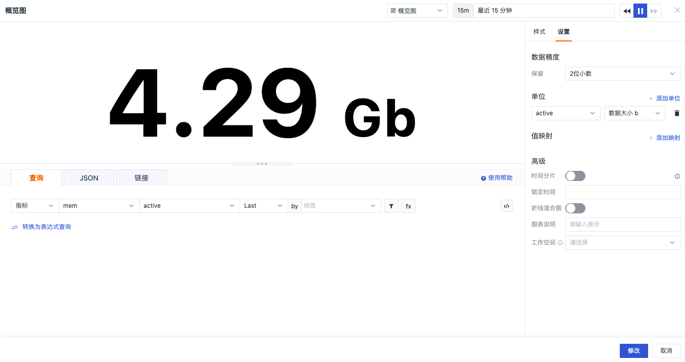 | 单位 | 支持为查询结果自定义设置单位。 1.若查询的数据无单位,在图表设置单位后,按照设置的单位在图表上展示 2.若查询的数据自带单位,或者您在 指标管理 中为指标设置了单位,并在图表设置单位后,按照在图表设置的单位在图表上展示 3.若查询的数据无单位,且在图表不设置单位,则按照科学计数自动计算图表Y轴数值;按照 千分位 的格式在图表上展示原始数值。 科学计数说明 默认查询结果值自动转换单位,展示遵循「科学计数 K、M、B」(1千 = 1K,100万 = 1M,10亿 = 1B),保留两位小数点;人民币自动转换单位「元、万、亿」,保留两位小数点 例如:单位的时间间隔选择单位为 ns,那么按照数据的大小,查询结果只自动转换单位效果如下,以此类推: |